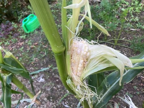 庭にとうもろこしの種を植えていました なぜか間違えて同じ場所に枝豆を植えてしまい先行き不安だったけど、思ったより立派に育って収穫を楽しみにしていました。 ↓ボケて枝まめと同じ場所に植えた時の記事 www.bucchihappylife.com ところが、ある日庭を見…